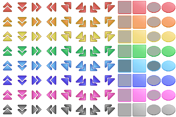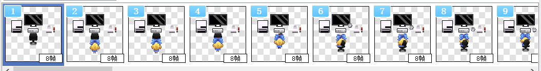 所以,作者我基本都会提供 红橙黄绿青蓝紫灰 八种颜色的行走图。
