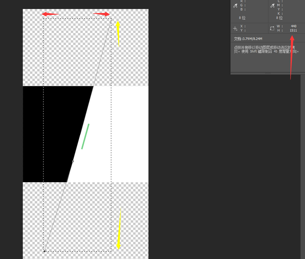 为了确保刀光与切角重合,打开ps,画一条矩形,然后旋转矩形,