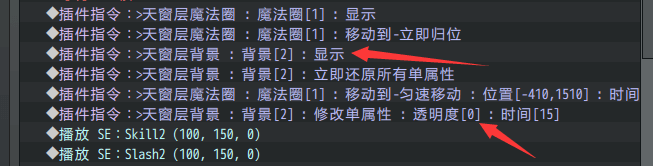 插件指令控制刀光时,也同时用插件指令让白色背景闪一下。