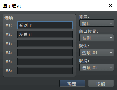 该窗口通过事件指令:【信息】>【显示选项…】调出。