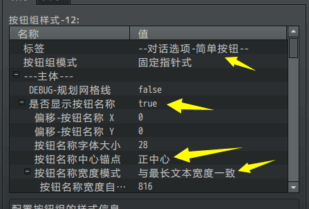 2)按钮组的文本非常长,由于默认可编辑的文字长度有限,可能要用到 字符串核心 的”\str[1]”来指代长文本。