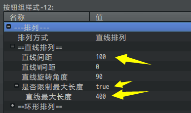 这里排列方式使用 直线排列,旋转角度90朝下。并且限制最大长度。