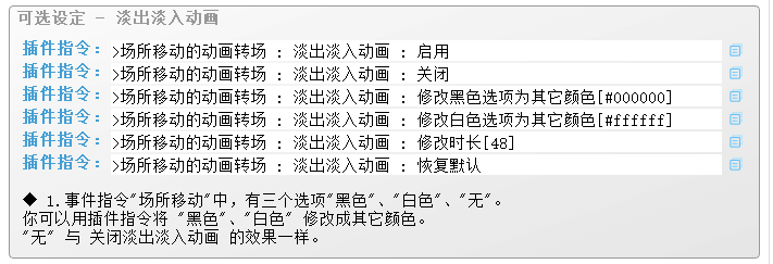 通常为淡出淡入动画,遇敌战斗时的闪烁动画也是默认的动画转场。