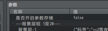 开启则当前所有背景层配置会一起存入存档中,但这会造成旧存档数据不同步的问题。关闭则只使用插件中配置的参数数据,但插件指令对 透明度、移动速度 的修改都只能临时有效,读取存档后失效。