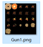 这个资源从默认动画素材“Gun1.png”中,ps剪切出来,然后设置黑白,实现的图像。