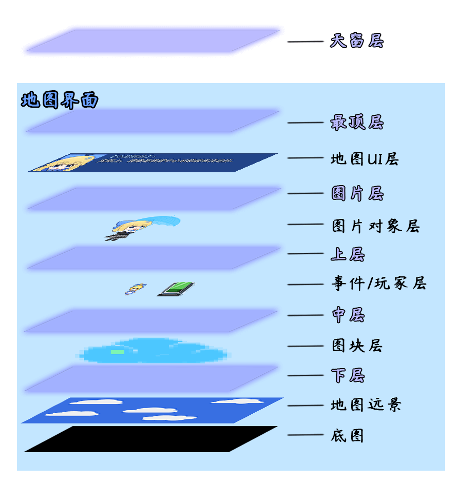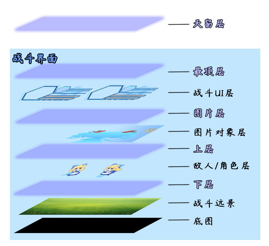 天窗层只有一层,且都在 菜单界面、地图界面、战斗界面 的上面。