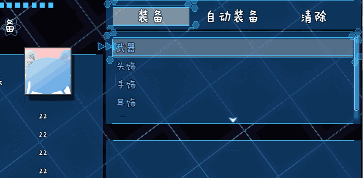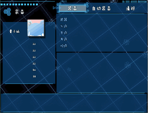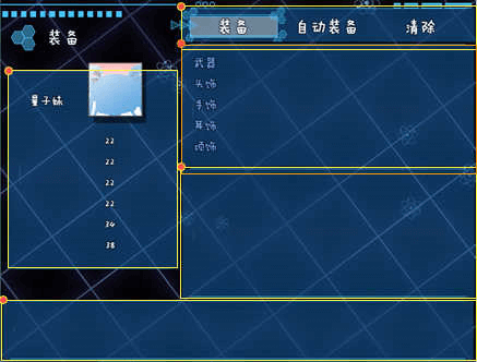 装备窗口有5个窗口,其中选项窗口、武器槽、武器列表三个窗口由于高度原因,是挤在一起的。(上面的ui可能看不出来,看看下面这个)合理超出一点高度无伤大雅。