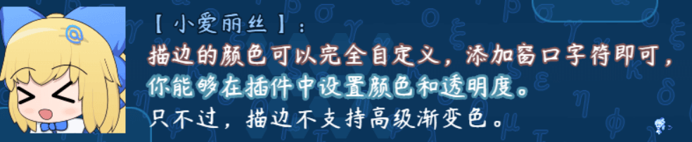 默认值的插件指令如下图。具体效果可以去 窗口字符管理层 看看描边介绍。