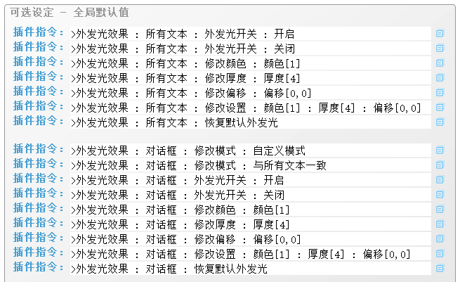 默认值的插件指令如下图。具体效果可以去 窗口字符管理层 看看发光介绍。