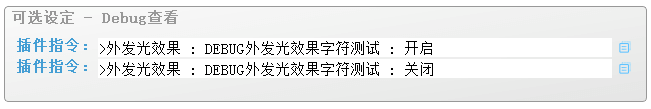 插件提供了窗口字符DEBUG查看效果,展示了描边、外发光的测试功能。