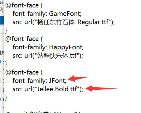 用记事本打开 gamefont.css文件,添加下图的文本结构。