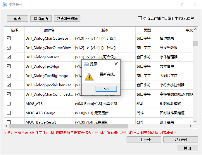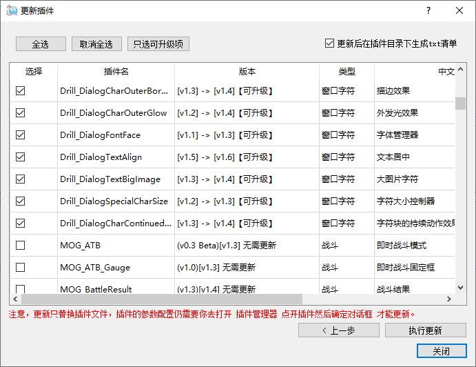 需要更新的插件
