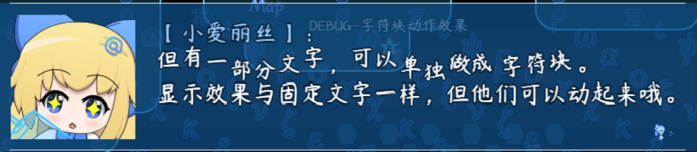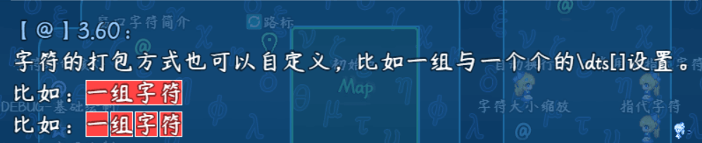 功能-窗口字符光标偏移 空白块字符 加粗与倾斜全局默认值 全重置字符常规换行/手动换行/自动换行字符排版/DEBUG 范围盒/内边距临时文字+效果字符 永久文字+指代字符不生效的窗口字符