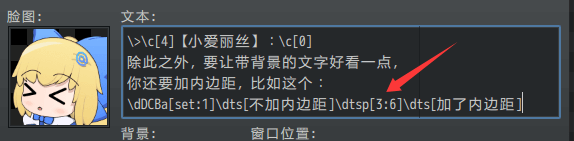如果绘制过程中,遇到了\c[24]就变成绿色,如果遇到了\c[0]就恢复默认色。