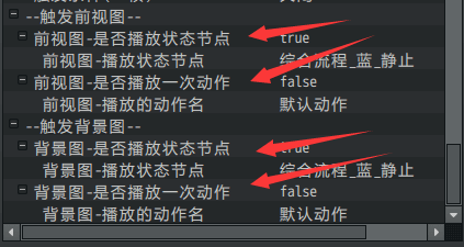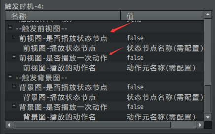前视图播放状态、前视图播放动作、背景图播放状态、背景图播放动作。
