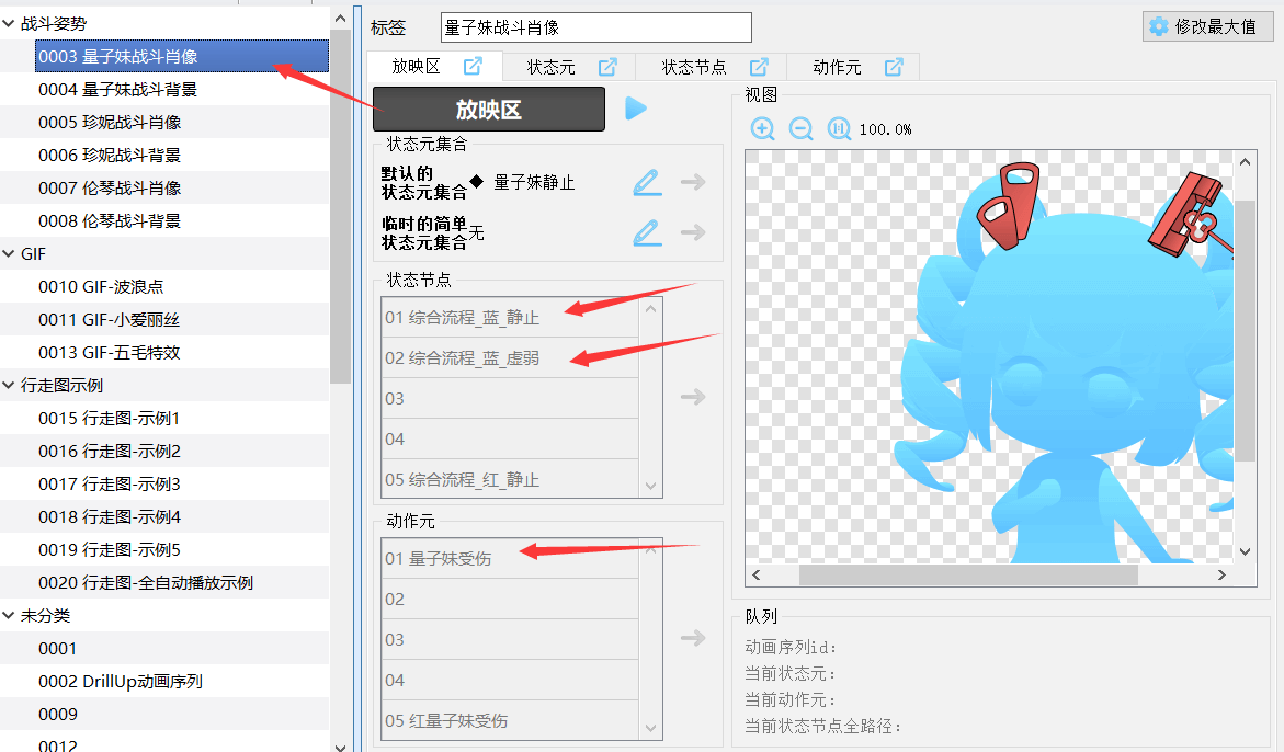 小工具>入门篇 教你如何用小工具配置GIF,并转入到游戏中并播放。小工具>高级篇 介绍更复杂的GIF配置,并在游戏中执行复杂播放。本文档 专门介绍角色肖像的 子插件自定义机制,其中包含 触发时机+状态元、触发(一帧)+动作元 的配置介绍。