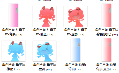 实际上作者我只画了两个形象……其它都是用ps稍微变色的。(后面会慢慢加吧……)