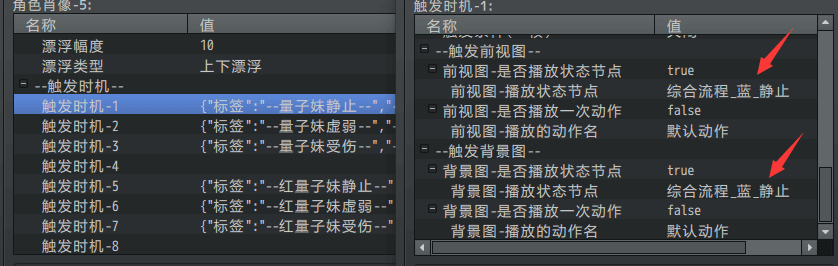 触发条件 对应 播放状态节点 (因为触发条件是持续的GIF)
