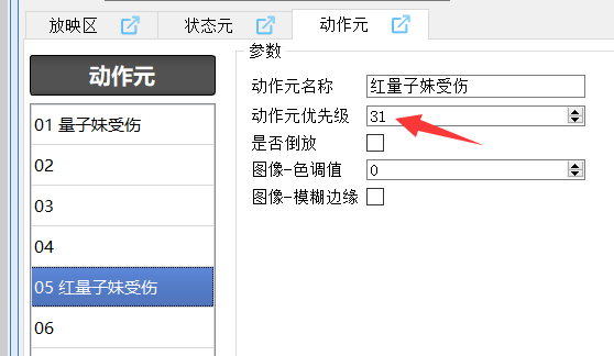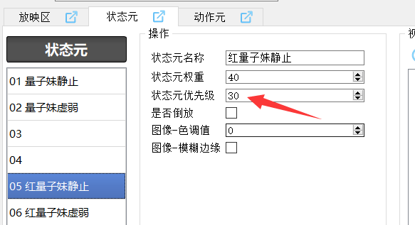 所以红量子妹设置了 状态元和状态节点 优先级30,动作元优先级31。