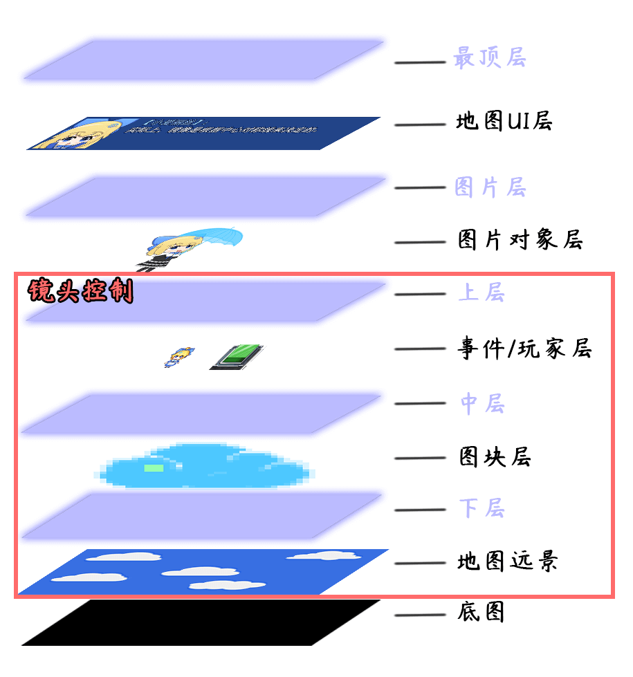 边缘遮挡层: 是指整体平移时防止玩家看到边缘的遮挡层。