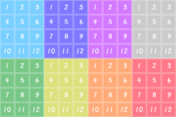 那么每个等分可以代表不同的物体,如下图。(12*8个48*48的物体)