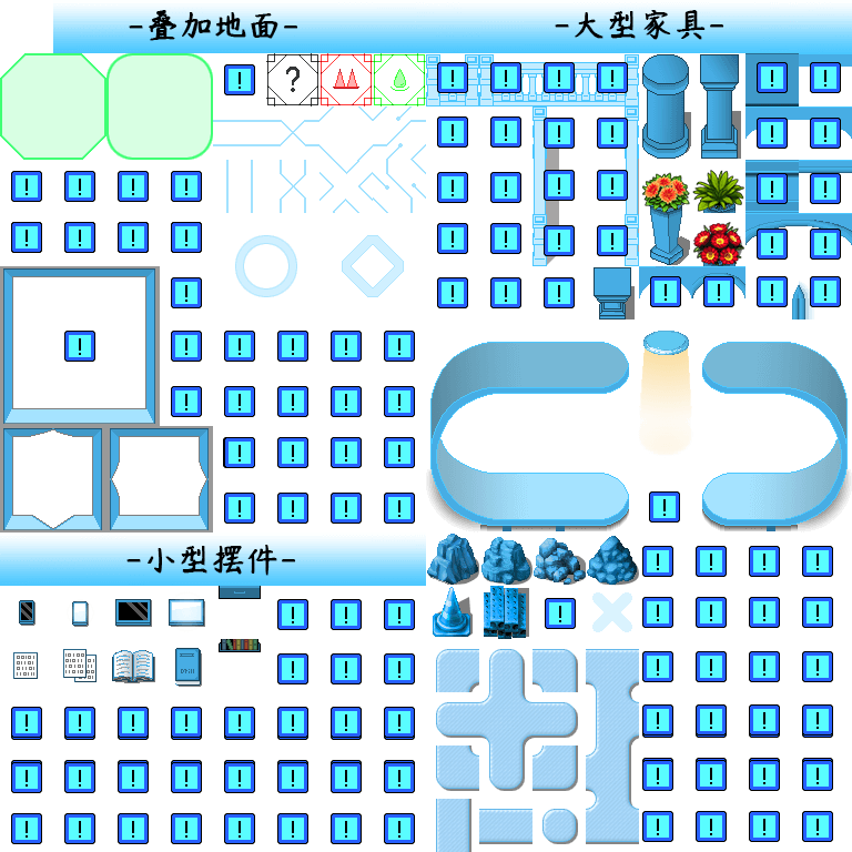 原设定之所以把各种场景元素都集中在图块中,是因为为了节约资源图片的内存占用,每读取一张图片,会多占用一部分内存。