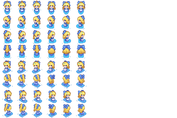 行走图资源中的朝向也是从上往下按照2/4/6/8顺序排列,所以你看到的行走图都是 下/左/右/上 的顺序。