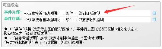 解决方案1.如果把行走图拆成了多个事件,那么多个事件都加下面的注释。=>玩家接近自动透明化 : 开启=>玩家接近自动透明化 : 条件 : 只要接触就透明2.或者,将行走图用ps或者其他方式,改成48x96的高度即可。玩家只要站在该事件后面的图块,就自动透明。