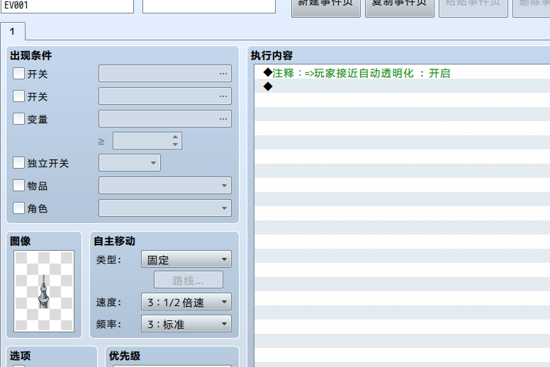 注意,如果事件页第一页为高的行走图48x144,而第二页为小的行走图48x96,