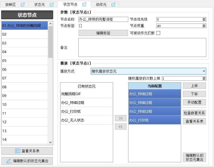 其中,“办公_持续过程”被播放的情况要多一点,所以在随机播放中,复制了三份。