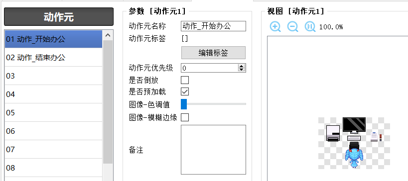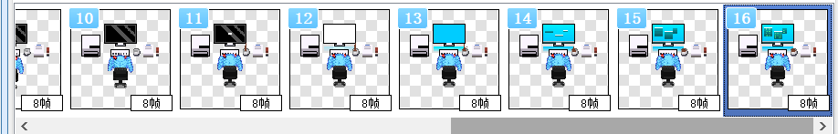 该设计前期从灵感到实现,并非一帆风顺,简单了解一下过程即可。(此处与文档“7.行走图 > 动画序列设计-打开电脑.docx”的前期实现一模一样)