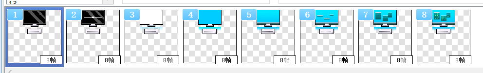 》电脑_打开电脑(动作元):包含8帧,如下图。