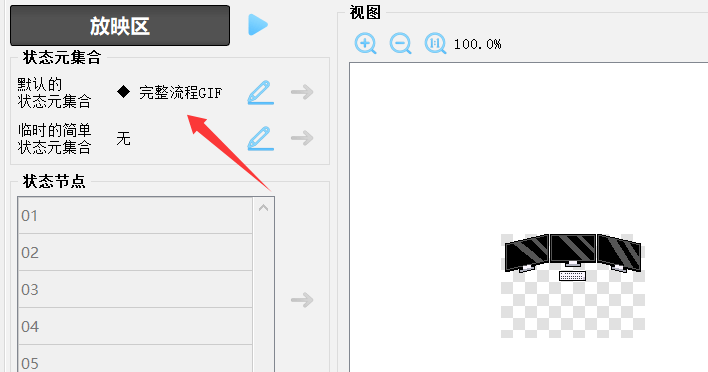 导入后,将全部素材放在1号状态元,命名为:完整流程GIF,
