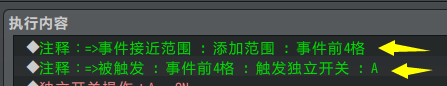 事件注释中,可以写 条件关键字 “事件前4格”,也可以写 “事件触发[4]”。